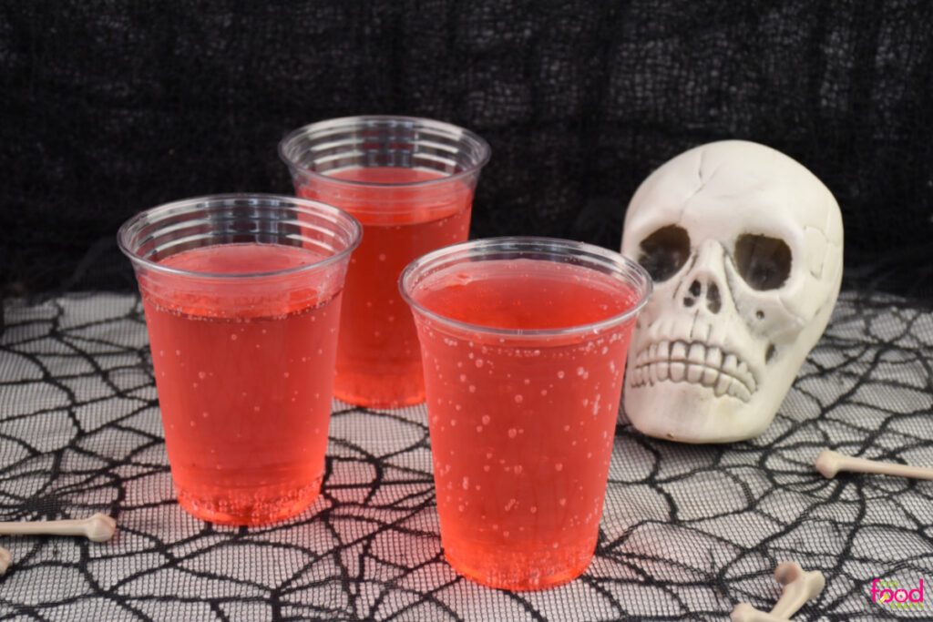 - Whisk together your cherry Kool-Aid (or juice) with water according to the package directions. You want a deep red color for the spookiest effect.