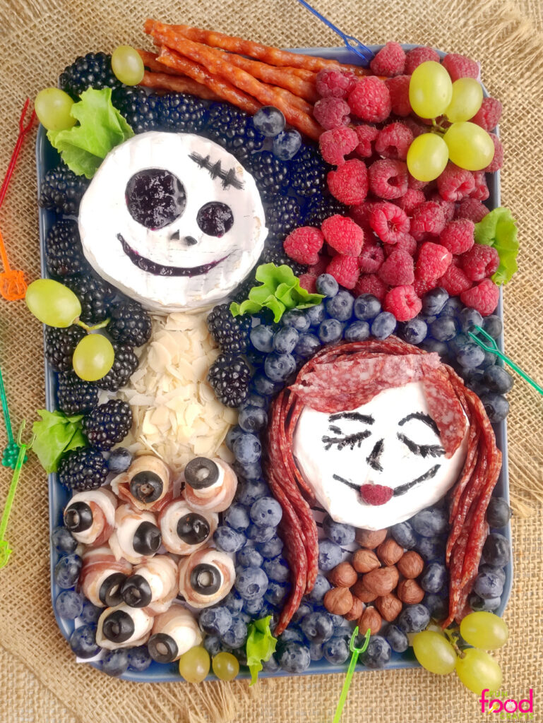This isn’t your average cheese board, y’all; this one’s got some fang-tastic flair. Here’s how you bring Jack & Sally to snack life: